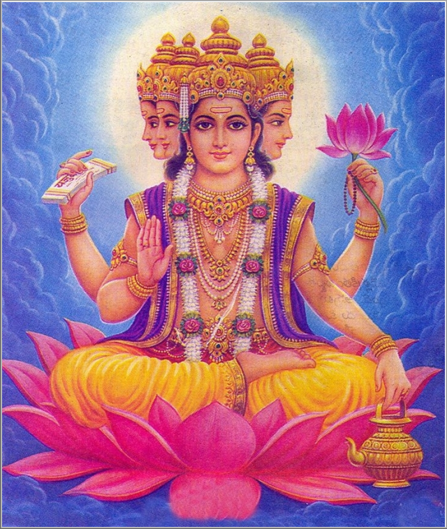 Brahmā is the divine Hindu deva of Creation and one of the magnificent Trimurti. He is the father of Mānu, from whence all human beings are descended. Saraswati is Brahmā's primary wife, Savitri is his second and Gayatri his third. All his wives are Vedic Goddesses and are revered as Vedamata meaning 'Mother of the Vedas'.